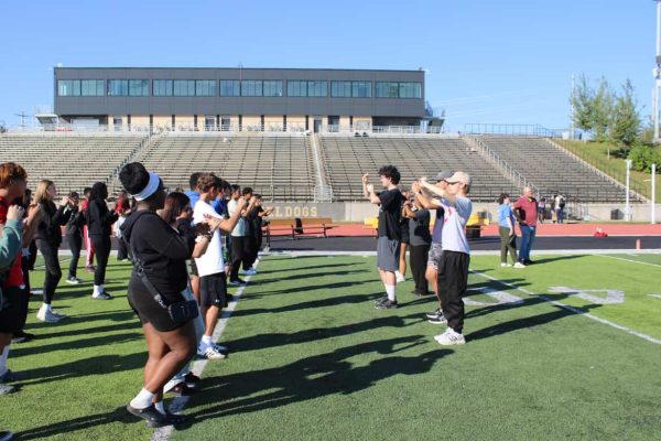 Burke section leaders guided the students by splitting them into groups based on instruments, such as brass, woodwind, percussion, and more. Each group was introduced to the marching basics, including how to move in step, how to march with their instrument, and some stretches.